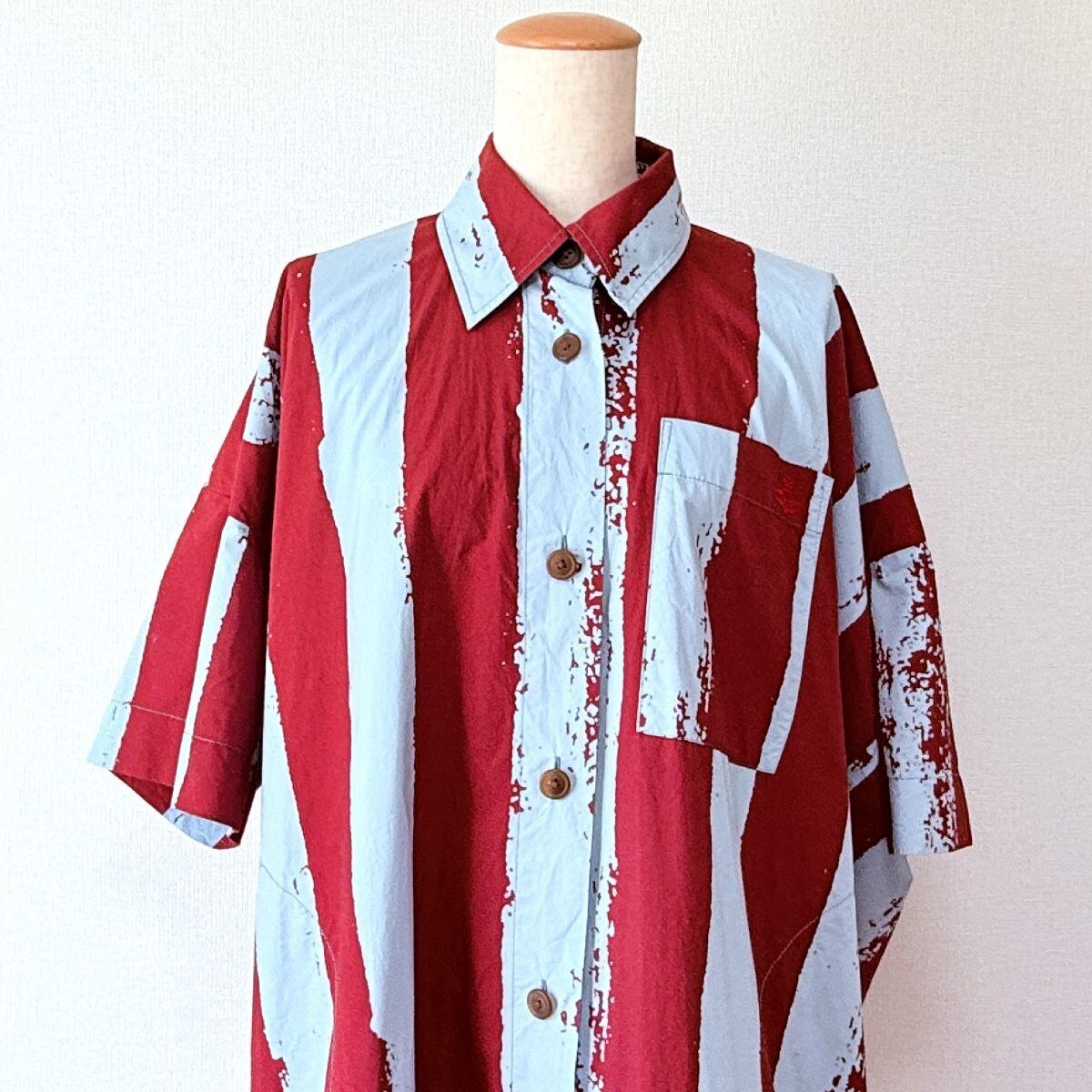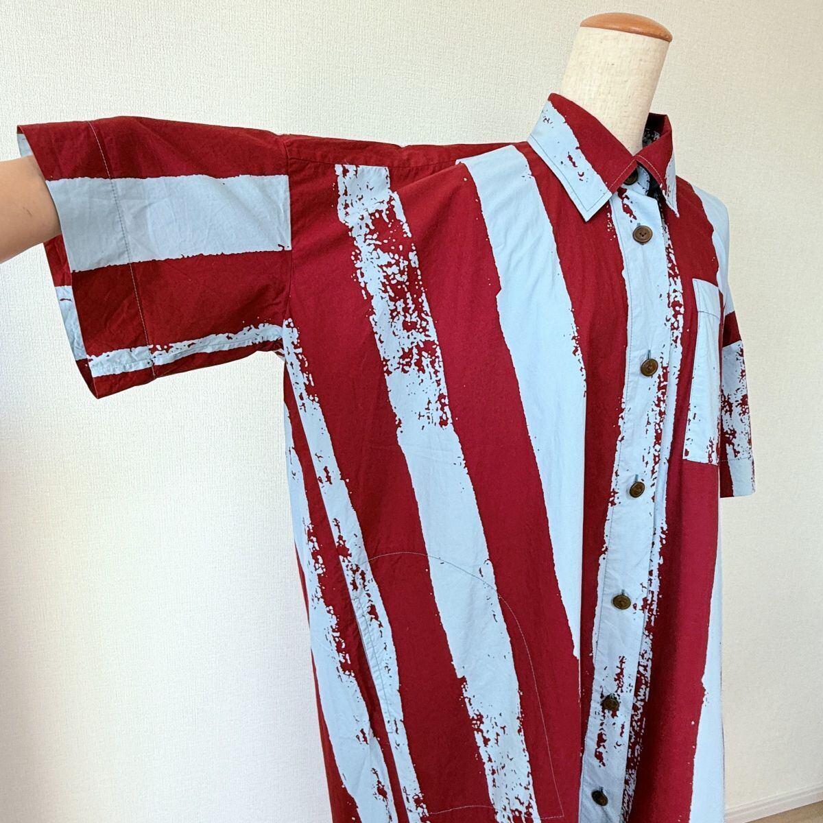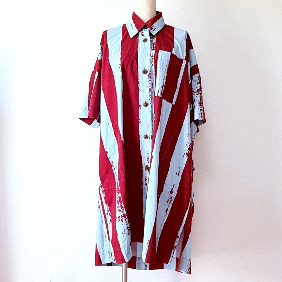 アナーキーな太めストライプのペイント柄 シャツワンピース