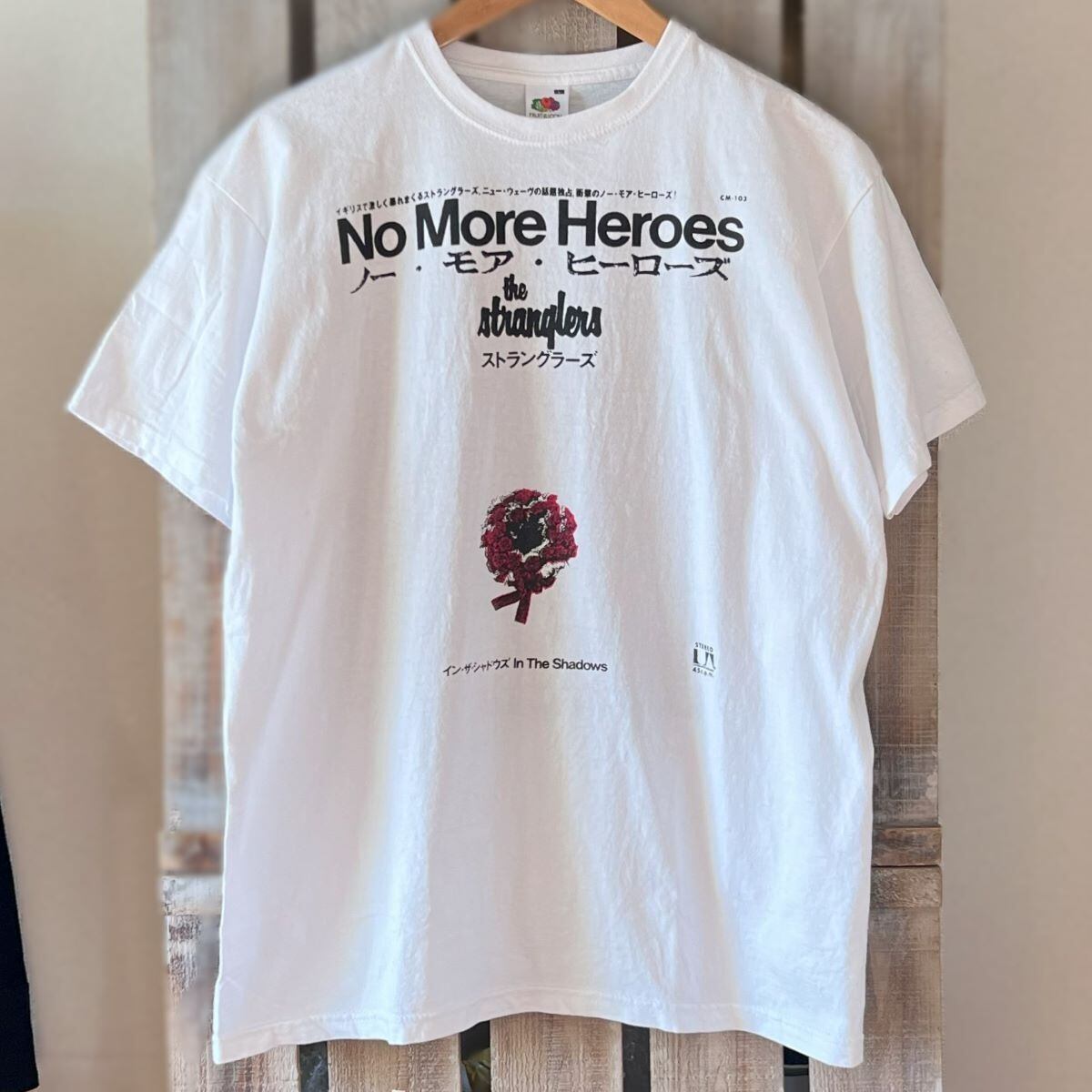 ストラングラーズ 大名曲「ノー・モア・ヒーローズ」の日本版シングルジャケットデザインがプリントされている古着Tシャツ です。